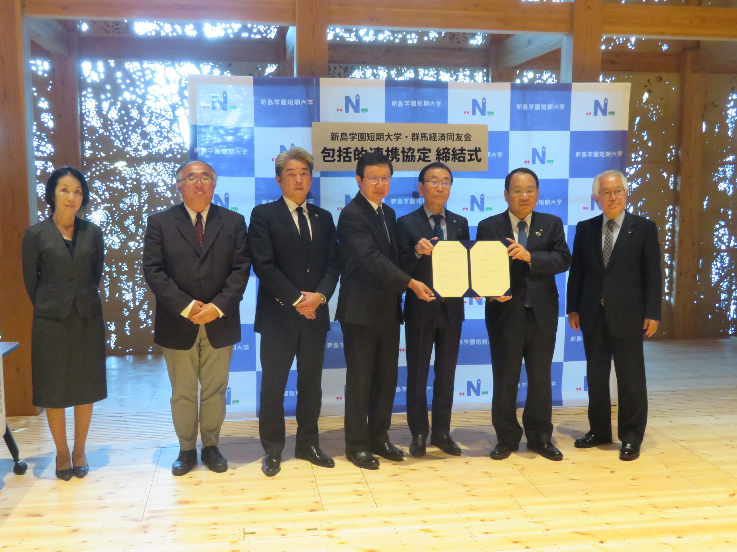 この協定は、新島学園短期大学と群馬経済同友会が有する人的資源等を相互に有効活用し、連携・協力を行うことで、地域経済の活性化と人材育成に寄与することを目的としています。