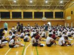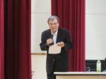 講師には林明夫会員(株式会社開倫塾/代表取締役社長)が登壇し、「自分の未来を描く時間、自分の未来は、自分で切り開こう-『人生は青天井、一生青天井』『一生勉強、一生青春』-」をテーマに2、3学年の生徒約300名に対して講演を行いました。講演のなかで林氏は、「諦めずに小さいことをコツコツと積み上げていけば、きっと志を成し遂げられる。一生をかけて自分を磨いて未来を切り開いていこう。」と投げかけられました。