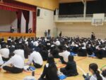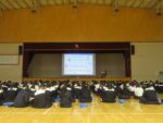 講師には久保田智之会員(株式会社シムックス/取締役副社長)が登壇し、『インターンシップに対する心構え』をテーマに2学年の生徒約200名に対し、講演を行いました。講演のなかで久保田氏は、「インターンシップでは受け入れる企業も、学生の質問などから気づきを得られることがある。より有意義なインターンシップにするために、その企業や業界がが抱える問題点や課題を考えて質問したり、その課題に対して自分なりの考え提案してみよう。」と語られました。