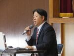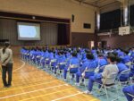 講師には遠藤直行会員(株式会社田村屋/代表取締役社長)が登壇し、『自分の将来を切り拓く(夢を持つことの大切さ)』をテーマに、2学年の生徒140名に対して講演を行いました。講演のなかで遠藤氏は、夢に向かってリアルな目標を持つことでやるべきことが明確化されることや、何事も「楽しそう!」と思える好奇心に加え、チャレンジしてみる行動力が大切だと述べられました。